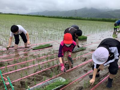 6月5日(水)、5・6年生がJA富良野青年部南支部の方々を講師に、地域の田んぼで田植えの体験を行いました。初めは稲を植えるのも時間がかかっていましたが、徐々に要領を得て、早く植えることができるようになっていました。これからは、生育調査、稲刈りにつなげていきます。山部地域を生かした素晴らしい学習活動でした。