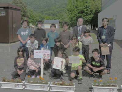 6月7日(金)に、生涯学習センターが主催の『花いっぱい運動』に1年生が参加しました。地域学校協働活動の一環で、地域、保護者の方々と一緒に、山部中央公園の花壇に花の苗を植えました。大人の方々に教えていただきながら、苦労しながらも、子どもたちは苗を植えることができました。