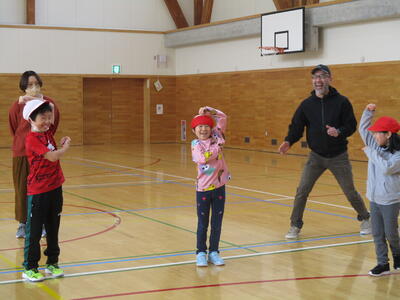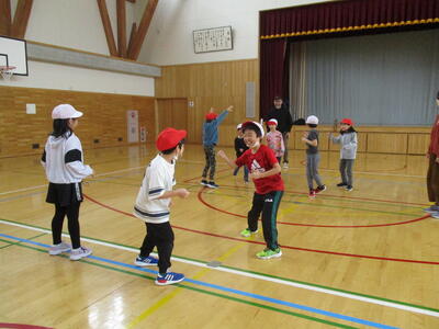 11名の新1年生は,体育館で1・2年生の体育の授業に参加しました。